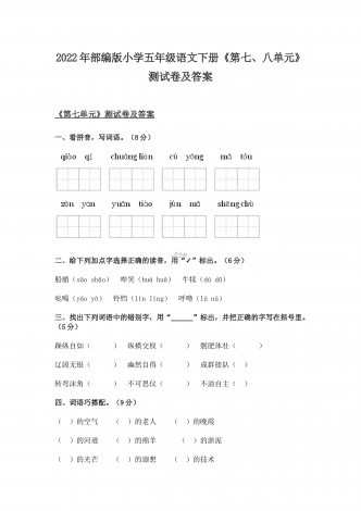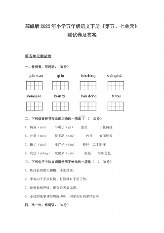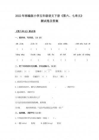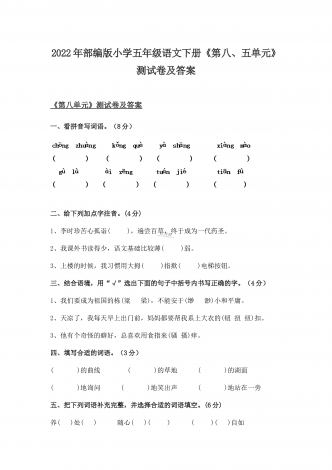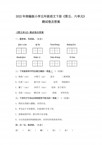 2022年人教版小学五年级数学上册《实际问题与方程》与《用字母表示数》测试题及答案人教版小学五年级数学上册《实际问题与方程》测试题及答案一、填空题 1.果园里种了桃树和梨树共180棵,桃树的棵数是梨树的3倍,可设________的棵数为未知数x,列方程为________。 2.派派的妈妈和派派今年共36岁.再过5年.派派妈妈的年龄比派派年龄的4倍还大1岁。当派派的妈妈40岁时,派派的年龄为________岁。 3.小惠今年6岁,爸爸今年的年龄是她的5倍,________年后,爸爸的年龄是小惠的3...