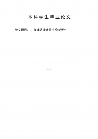 本科学生毕业论文论文题目:加油站油储监控系统设计摘要随着时代的发展,人们对生活质量提高了,原来几乎所有的出行都是步行,现在大部分都由汽车取而代之,汽车数量的增加意味着对汽油供应的要求增加,因此,加油站目前面临着许多的问题,特别是在油罐的监控方面,没有任何疏忽的余地。我们通常使用模拟控制屏来完成加油站油储监控系统的实现,各种开关、指示灯和指示仪表等组成了加油站油储监控系统。由于之前的操作方法完全是手动的,监控功能过于单一、信息量较小、手动抄表、统计工作量较大且特别容易出现误差、油罐扩容时需要按照系...