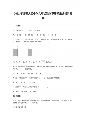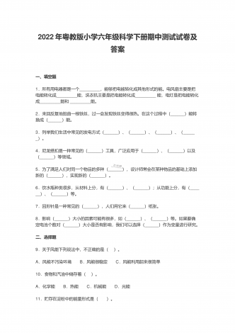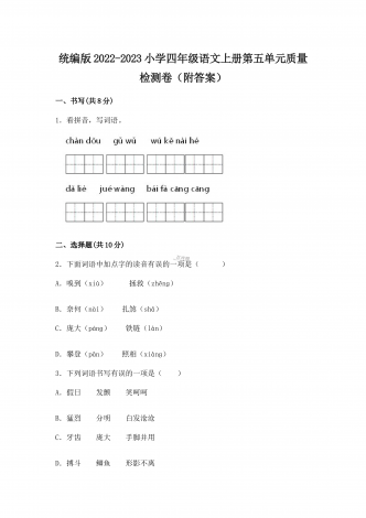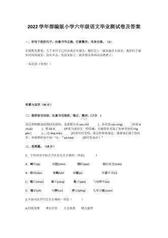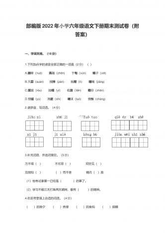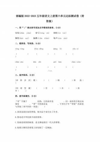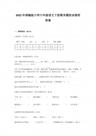 2022年部编版小学六年级语文下册期中达标综合测试卷附答案
