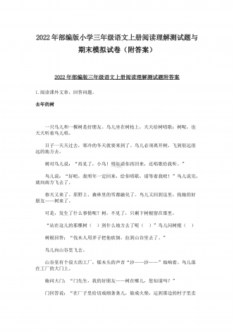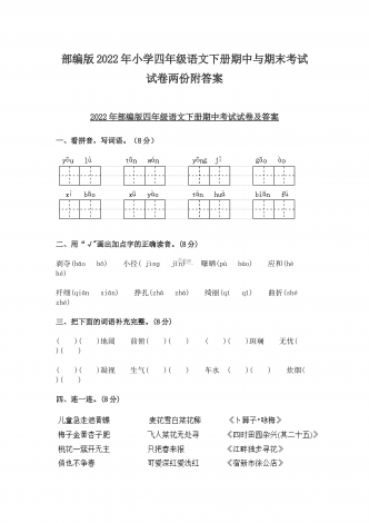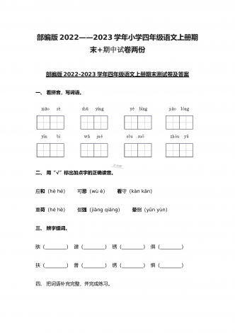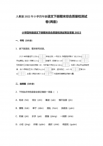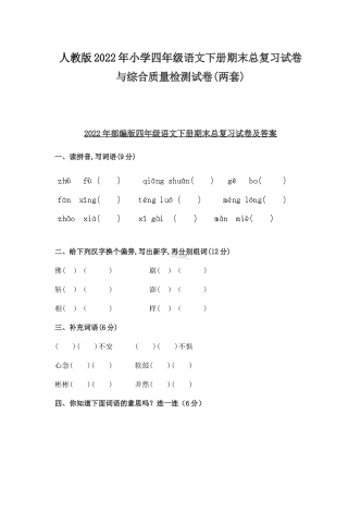 (两份)2022年部编版小学四年级语文下册期末综合复习试题附答案
