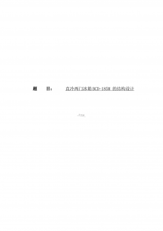 题目:直冷两门冰箱BCD-185M的结构设计一、本课题研究的主要背景、目的和意义1.课题背景20世纪20年代中期第一台家用电冰箱在德国诞生,家用电冰箱的诞生给人们的日常生活带来了许多的便利,但其外观较为笨重,不易操作使用,而随着电的使用日渐广泛,人们对于家用电器的研究日益透彻,将第一台电冰箱的原型经过不断压缩、重新成型,在原有的电冰箱冷藏冷冻基础上加以改进逐渐诞生了如今的卧式冰柜和家用冰箱。冰箱的发展是建立在制冷技术发展的基础上的,随着制冷技术的不断发展才有了现代冰箱的发展。到20世纪,制冷技术...