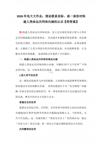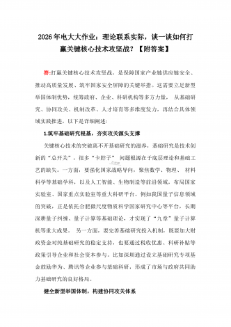 2026年电大大作业:试述这一时期我国建立独立的、比较完整的工业体系和国民经济体系的重大意义是什么?【附答案】答:在新中国成立后至改革开放前的一段时期,我国逐步建立起独立的、比较完整的工业体系和国民经济体系,这一成就具有奠基性、战略性和历史性的重大意义,深刻影响了我国的发展进程,具体体现在以下几个方面:一、摆脱经济依附,实现国家经济独立1.打破帝国主义经济封锁新中国成立初期,面临着帝国主义的孤立、封锁和禁运,旧中国遗留的经济格局是半殖民地半封建性质的--工业基础极端薄弱,重工业几乎空白,轻工业和...