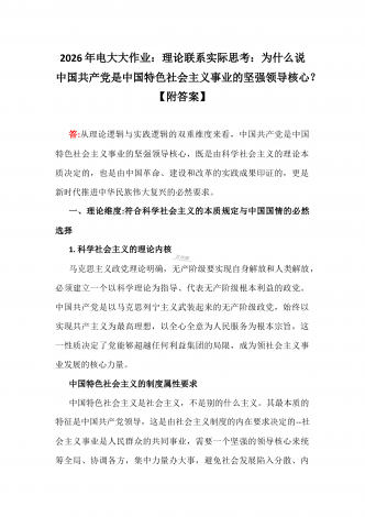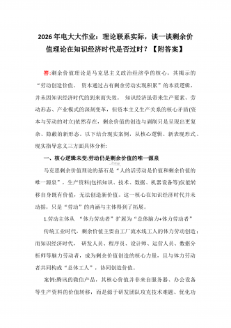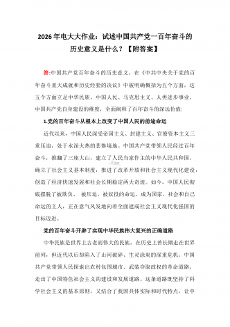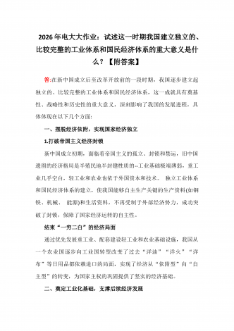 2026年电大大作业:试述这一时期我国建立独立的、比较完整的工业体系和国民经济体系的重大意义是什么?【附答案】