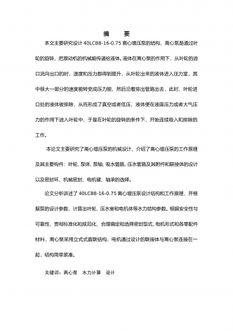 40LCB8-16-0.75离心增压泵的结构毕业论文-机械毕业设计资料