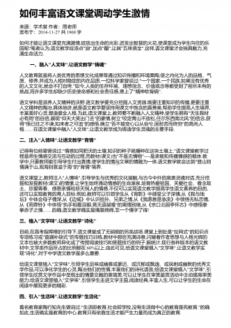 如何丰富语文课堂调动学生激情