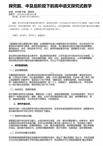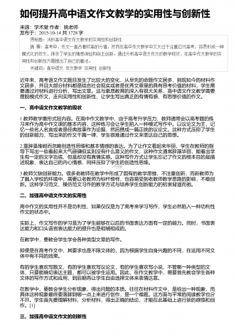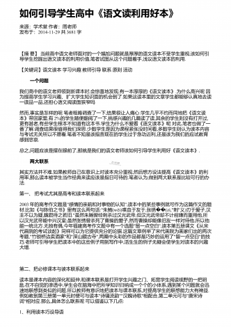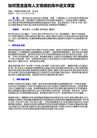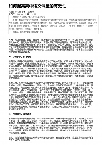如何丰富语文课堂调动学生激情来源:学术堂作者:周老师发布于:2014-11-27共1968字如何才能让语文课堂充满激情,绽放出生命的光彩,迸发出智慧的火花,使课堂成为学生向往的乐园呢?笔者认为,语文教学应添点"油",加点"醋",让其"五味俱全".这样,语文课堂才会独具魅力,充满生命活力. 一、融入"人文味",让语文教学"铸魂"人文教育就是将人类优秀的思想文化成果等通过知识传播和环境熏陶,使之内化为人的品格、气质、修养,并成为人相对稳定的内在品质.一位科学家曾说过:"一个国家,一个民族,如果没有...