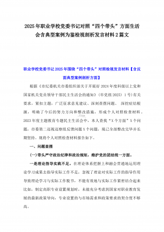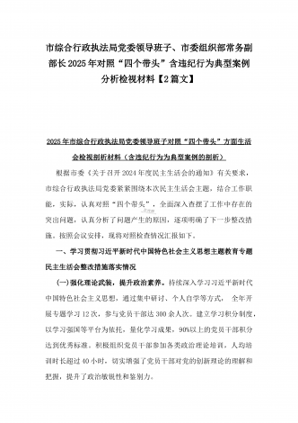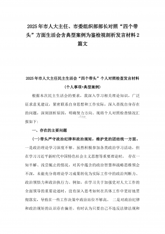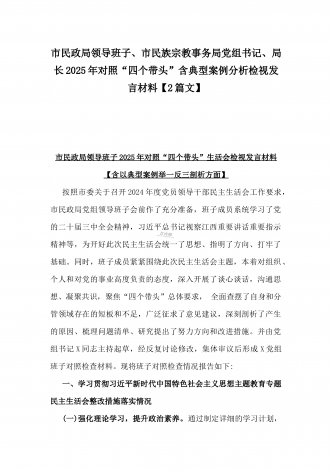 市委领导班子关于2025年民主生活会查摆问题整改方案与市民政局领导班子2025年对照“四个带头”含典型案例分析检视发言材料【2篇文】