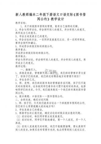 新人教部编本二年级下册语文口语交际《图书借阅公约》教学设计
