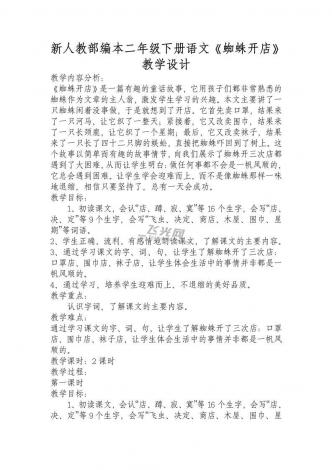 新人教部编本二年级下册语文《蜘蛛开店》教学设计