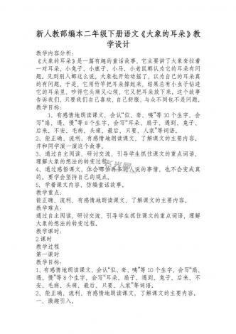 新人教部编本二年级下册语文《大象的耳朵》教学设计