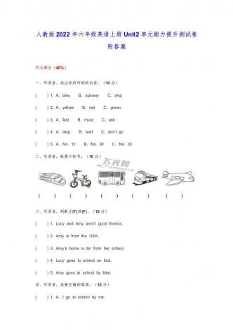 人教版2022年六年级英语上册Unit2单元能力提升测试卷附答案