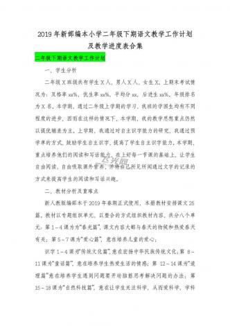 2019年新部编本小学二年级下期语文教学工作计划及教学进度表合集