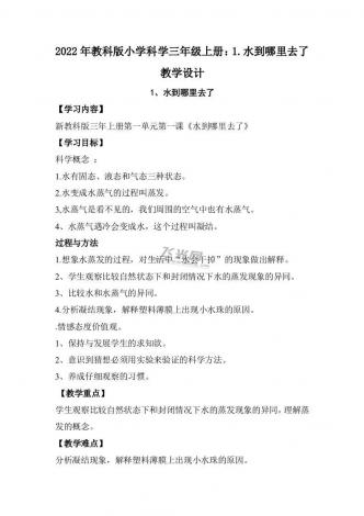 2022年教科版小学科学三年级上册:1.水到哪里去了教学设计