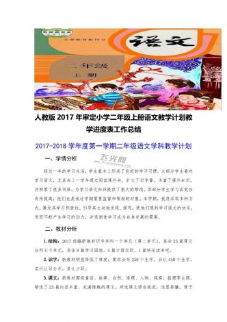 人教版2017年审定小学二年级上册语文教学计划教学进度表工作总结