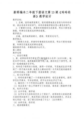 新部编本二年级下册语文第13课《玲玲的画》教学设计