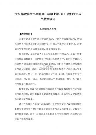 2022年教科版小学科学三年级上册:3-1 我们关心天气教学设计