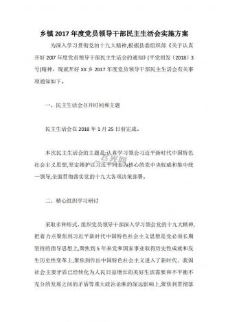 乡镇2017年度党员领导干部民主生活会实施方案