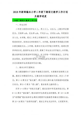 2018年新部编本小学二年级下期语文教学工作计划及教学进度