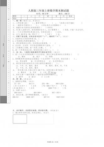 期末测试(试题)人教版三年级上册数学期末测试卷