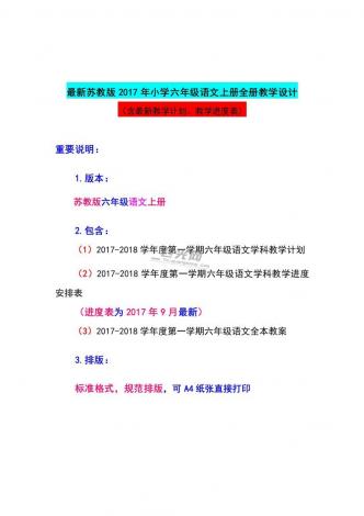 六年级语文上册全本教案、计划、教学设计、总结(2017最新苏教版)