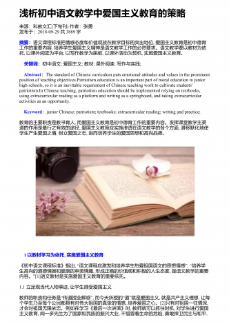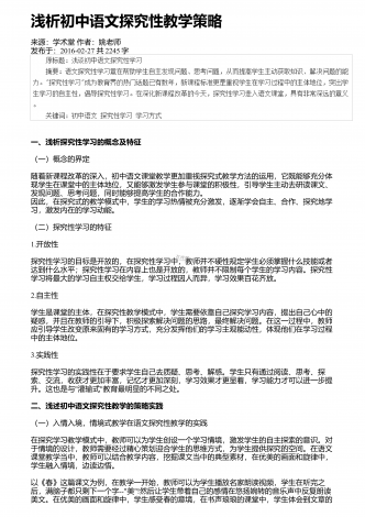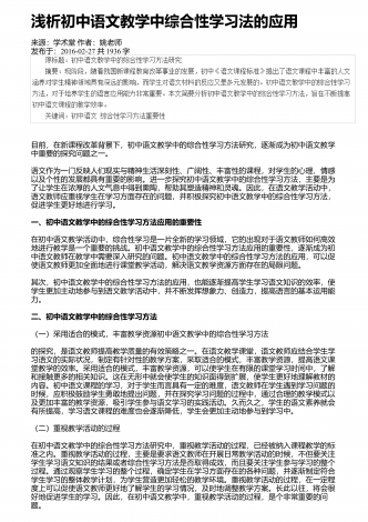 浅析初中语文现代诗歌教学来源:科学大众(科学教育)作者:王廷海发布于:2018-10-20共2003字摘要:现代诗歌具有深刻的内涵和很强的艺术性,能够提高学生的文学素养,培养人文精神。但是目前我国初中语文中的现代诗歌教学还有很多不足之处,教学方法和教学形式比较单一,导致学生的学习兴趣不足,不利于学生审美能力的培养。针对这些问题,本文提出了现代诗歌教学的改进策略,加强对现代诗歌的了解,引导学生对诗中的内涵进行感悟,从而提高初中语文现代诗歌教学的质量和效率。关键词:初中语文;现代诗歌;课堂教学;随着...