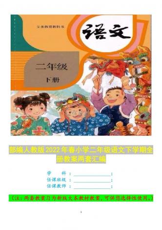 部编本2022年人教版小学语文二、一年级下册全册两套教案合集(二年在前)