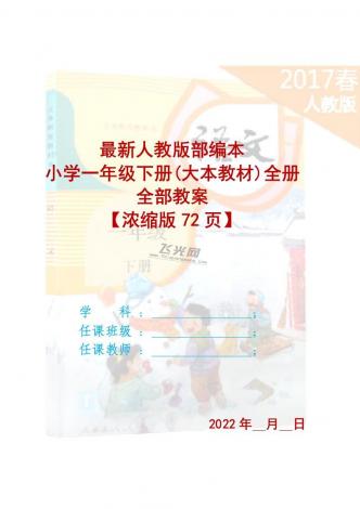 人教版部编本2022年小学一年级下册(大本教材)全册全部教案浓缩版72页
