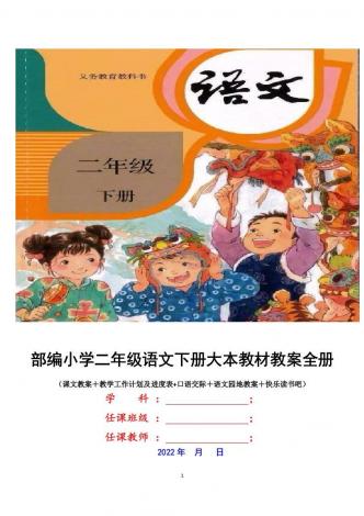 2022年春人教版部编本小学二年级下册全册教案(大本教材)