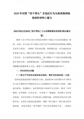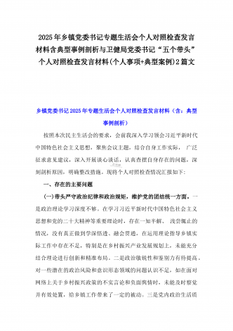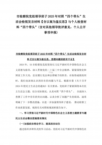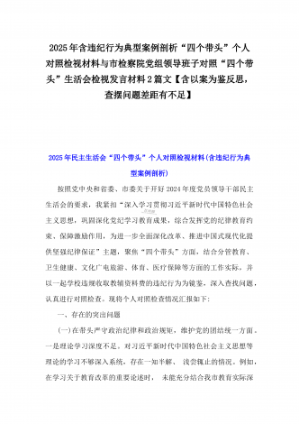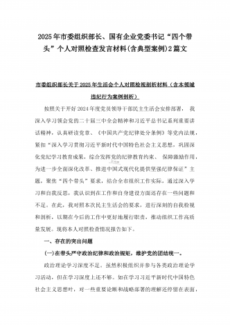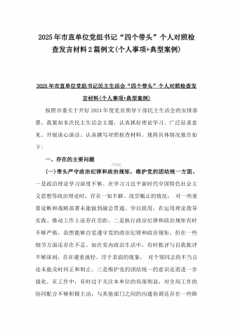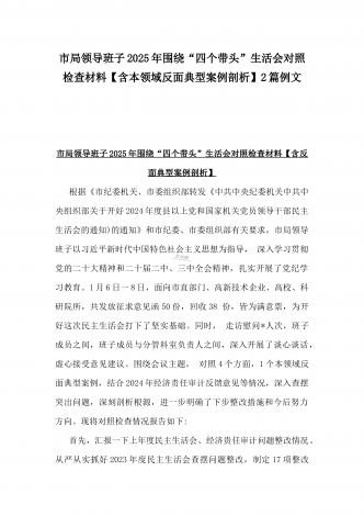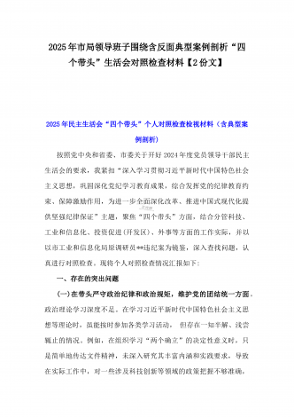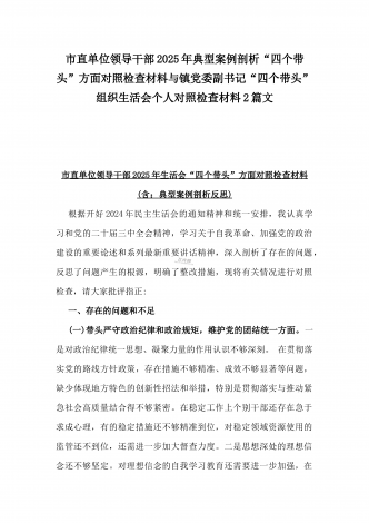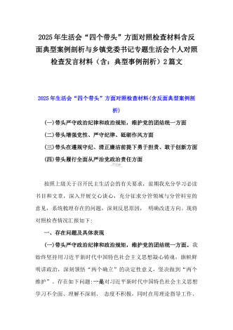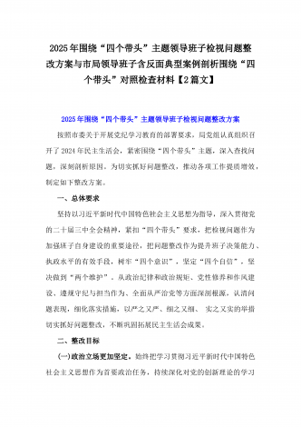 2025年乡镇(街道)围绕“四个带头”主题领导班子检视问题整改方案与市民族宗教事务局党组书记、局长围绕“四个带头”对照检视发言材料【含剖析违纪案例,反思自身不足】2篇文