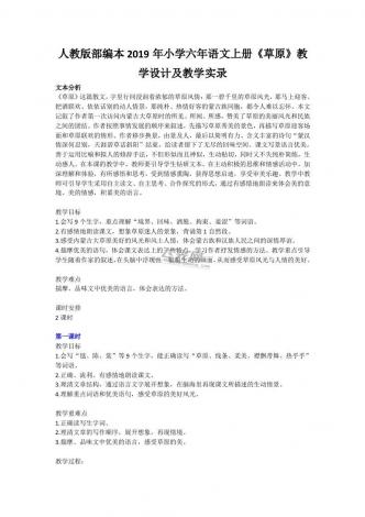 人教版部编本2019年小学六年语文上册《草原》教学设计及教学实录