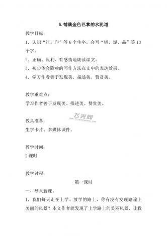 2018年秋新部编人教版小学三年级上册语文第5课《铺满金色巴掌的水泥道》第6课《秋天的雨》教案
