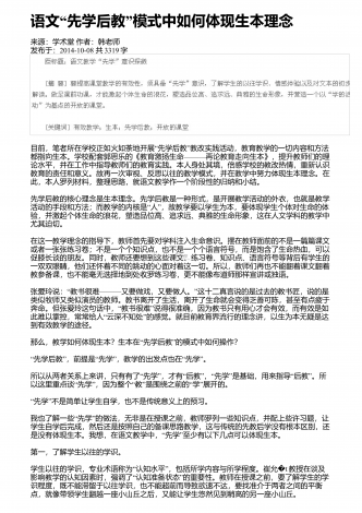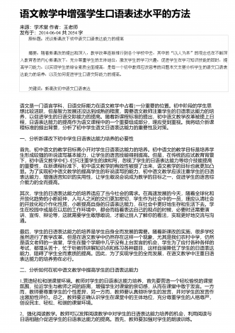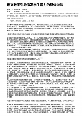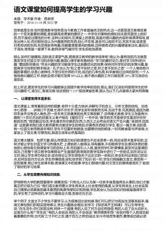 语文课堂如何提高学生的学习兴趣来源:学术堂作者:周老师发布于:2014-11-18共3022字效率就是生命.如何提高教学效率是当今教育工作者普遍关注的热点,这一点更是语文教育改革的一个至关重要的课题,是创建高效课堂的捷径之一.中学生对事物的感知往往是凭直觉上的好恶,而不是经过理性的分析.这种认知倾向,在课堂上的表现,就是对感兴趣的内容听得津津有味,甚至出神入化;而对那些自认为兴趣索然的东西,则心不在焉,甚至可以视而不见,充耳不闻;或者是对老师讲的东西,先觉得新奇有趣,而随着课堂课间的推移,这种猎...