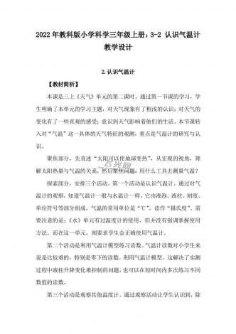 2022年教科版小学科学三年级上册:3-2 认识气温计教学设计