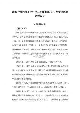 2022年教科版小学科学三年级上册:3-4 测量降水量教学设计