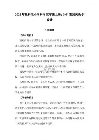 2022年教科版小学科学三年级上册:3-5 观测风教学设计