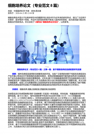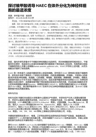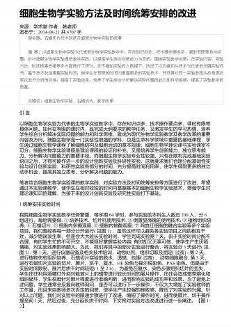 细胞三维培养与传统细胞培养的应用研究来源:安徽医学作者:江杨帆;何素冰发布于:2020-04-23共3728字 细胞培养论文(专业范文8篇)之第五篇 摘要:细胞技术作为医学生物技术中最核心、最基础的技术[1,2],已成为当今医学科研工作的必备技能,广泛应用于生命科学的众多领域,与其他学科领域的交叉研究也日趋增多[3,4]。传统细胞培养通常为细胞生长在单层二维的玻璃或塑料平面上,属于二维培养,具有较好的伸展性,但不能充分真实模拟体内生长模式,最终影响细胞增殖、分化、凋亡、基因和蛋白表达等细胞过程...