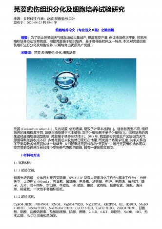 芫荽愈伤组织分化及细胞培养试验研究