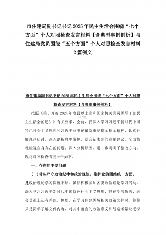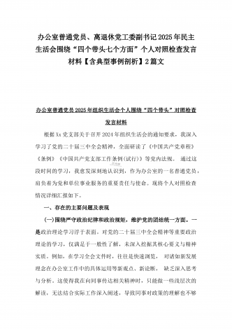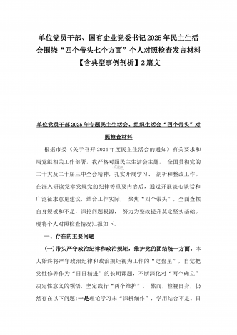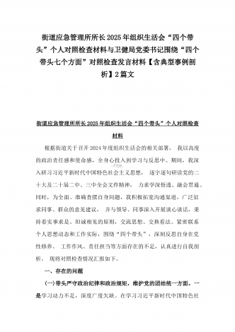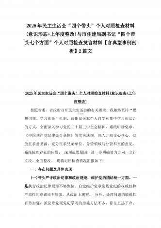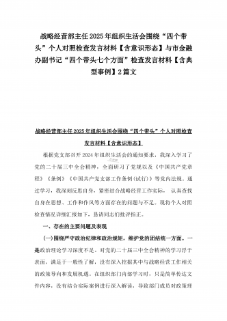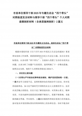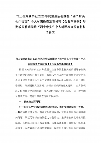 市科技局党支部书记2025年民主生活会“四个带头”个人对照检查发言材料(含意识形态)与税务局副局长、三级主办“四个带头”个人对照检视发言材料[含典型案例]2篇文