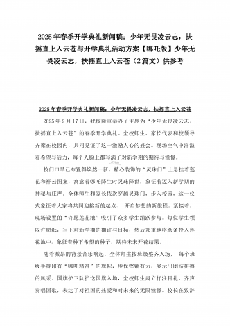 2025年春季开学典礼新闻稿:少年无畏凌云志,扶摇直上入云苍与开学典礼活动方案【哪吒版】少年无畏凌云志,扶摇直上入云苍(2篇文)供参考