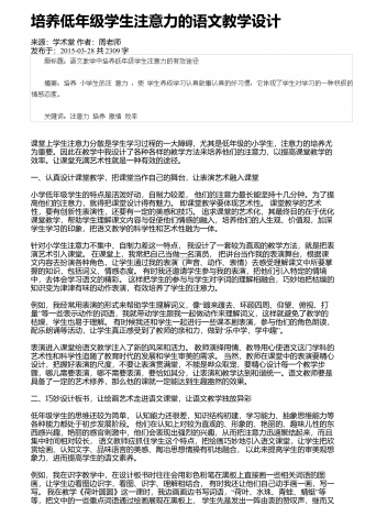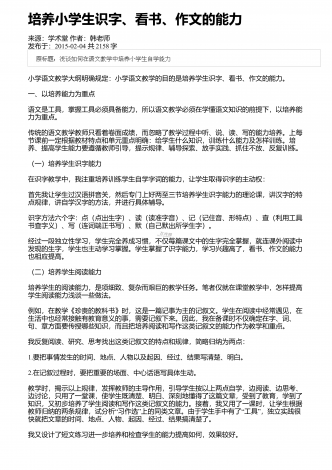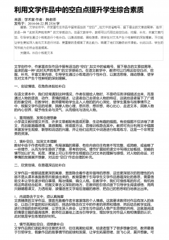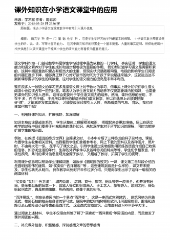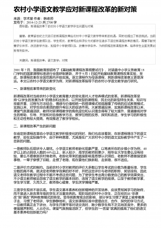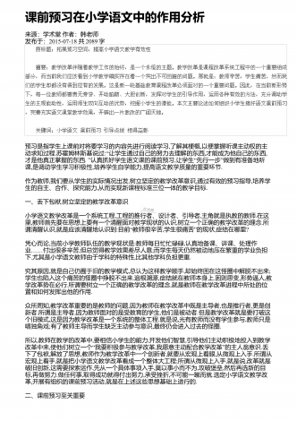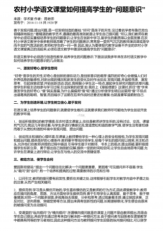 课改后语文教学教学观念与教学模式的探索来源:学术堂作者:周老师发布于:2014-11-20共3092字九年制小学语文教学课程改革,是在以科学的教育理论为指导,总结语文教学的成败得失,遵循语文教育理论中进行的.随着小学语文教学课程的改革,我们必须更新教育观念,改变旧的教学模式,进行课改后新的语文教学的探索.一、学生在课前充分预习,促进学生创新意识的形成与发展在新的语文学科的教学中,充分发挥学生的预习效益,对培养学生的创新能力和合作意识起着至关重要的作用."读书无疑者,须教有疑,有疑者却要无疑到这里...