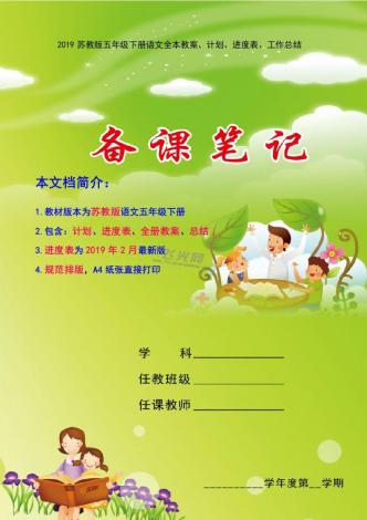 2018苏教版五年级下册语文全本教案、计划、进度表、工作总结