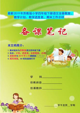 最新2019年苏教版小学四年级下册语文全册教案、教学计划、教学进度表、期末工作总结