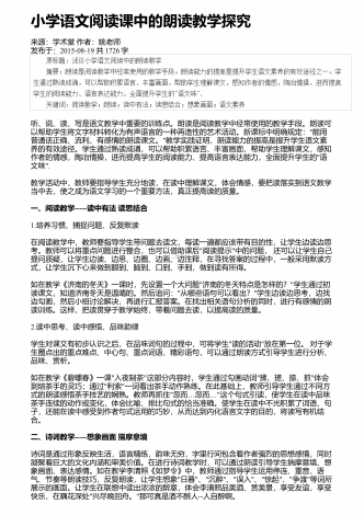 小学语文阅读教学中情景教学的应用