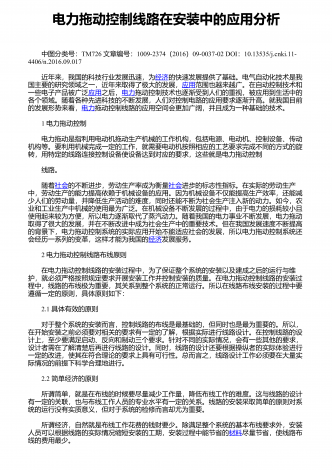 电力拖动控制线路在安装中的应用分析 中图分类号:TM726 文章编号:1009-2374(2016)09-0037-02 DOI:10.13535/j.cnki.11-4406/n.2016.09.017 近年来,我国的科技行业发展迅速,为经济的快速发展提供了基础。电气自动化技术是我国主要的研究领域之一,近年来取得了极大的发展,应用范围也越来越广。在自动控制技术和一些电子产品被广泛应用之后,电力拖动控制技术也逐渐受到人们的重视,被应用到生活中的各个领域。随着各种先进科技的不断发展,人们对控制...