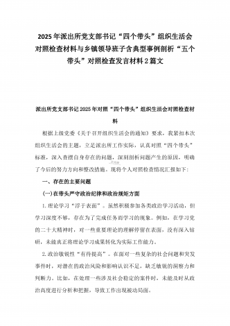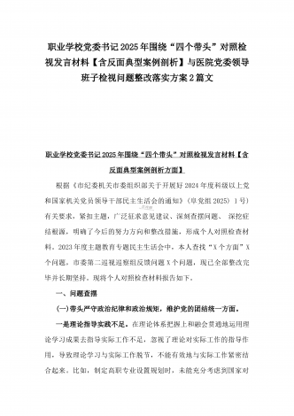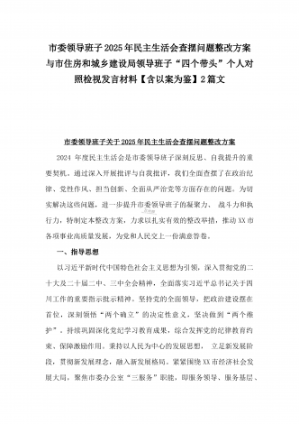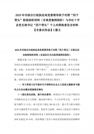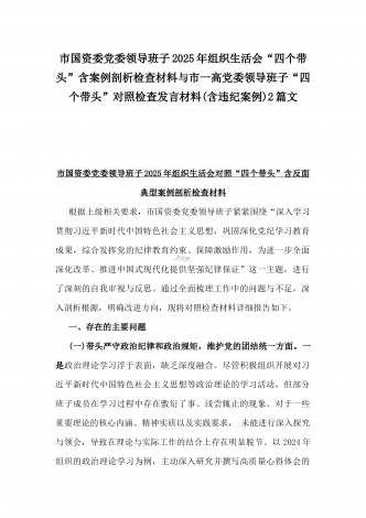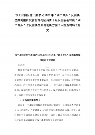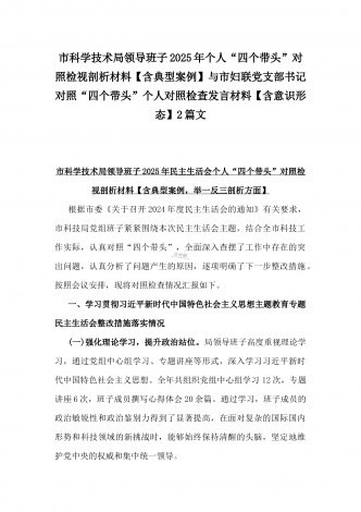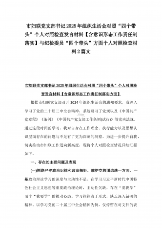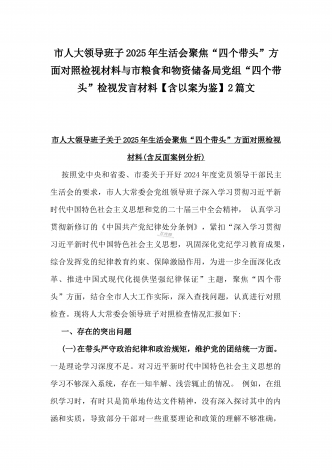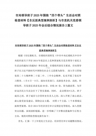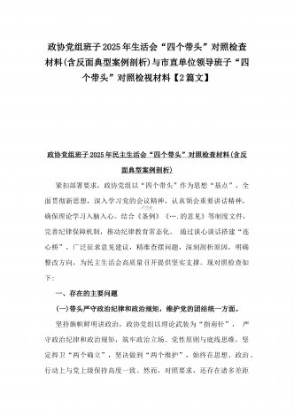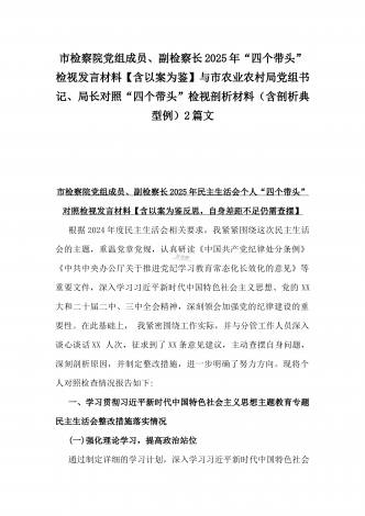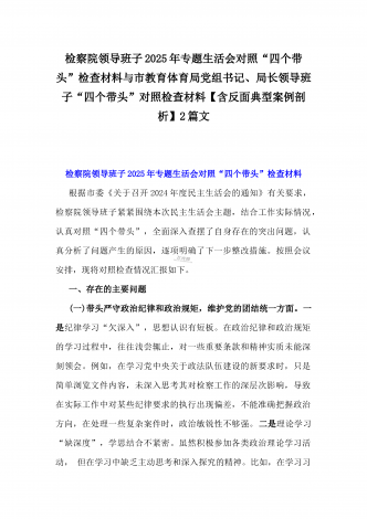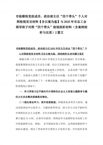 2025年市直单位党组书记生活会“四个带头”个人对照检查发言材料(个人事项+典型案例)与市检察院党组领导班子“四个带头”方面检视发言材料【含以案为鉴反思】2篇文