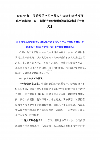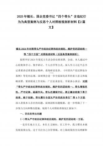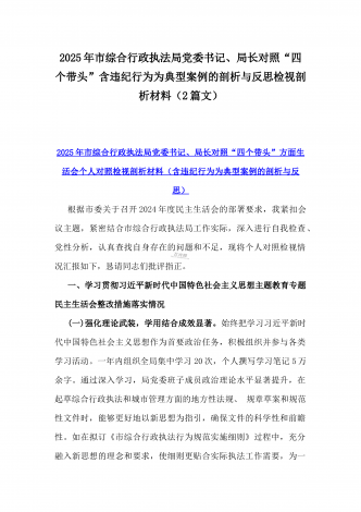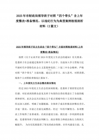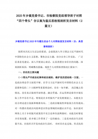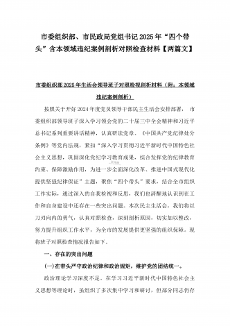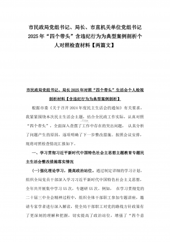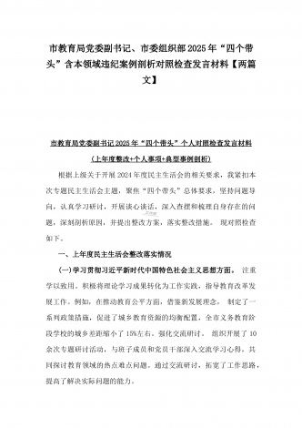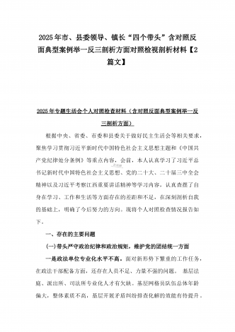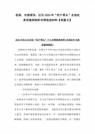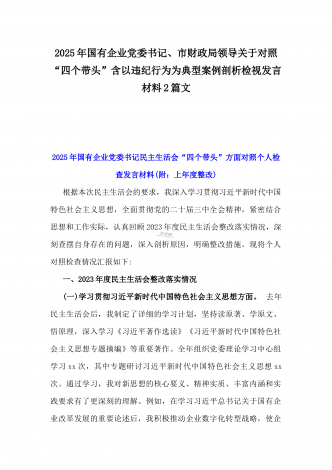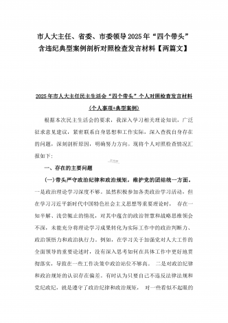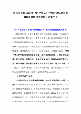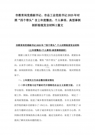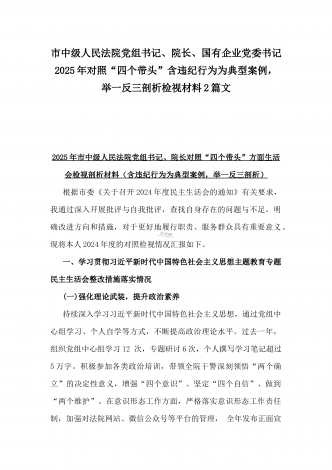 市总工会党组书记、市中级人民法院党组书记、院长2025年对照“四个带头”含个人情况、违纪行为为典型案例,举一反三剖析检视发言材料2篇文