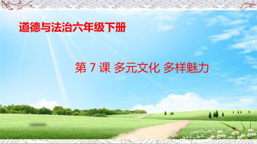第7课多元文化多样魅力道德与法治六年级下册你了解我们居住的地球吗?海洋占地更多还是陆地占地更多?地球71%的面积被海洋覆盖,陆地仅占地球表面积的29%你知道地球上有几个大洋和几个大洲吗?那分别是哪四大洋呢?那分别又是哪七大洲呢?陆地上分别有怎么样的地形?有连绵起伏的高山有低洼的盆地有宽广的高原有低平的平原有高低不平的丘陵在《世界地形图》找一找①喜马拉雅山脉,安第斯山脉,阿尔卑斯山脉②青藏高原,巴西高原,东非高原③亚马逊平原,西西伯利亚平原介绍一个你游览过或是了解到的一处世界自然景观,让大家知道它...