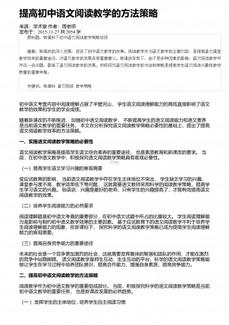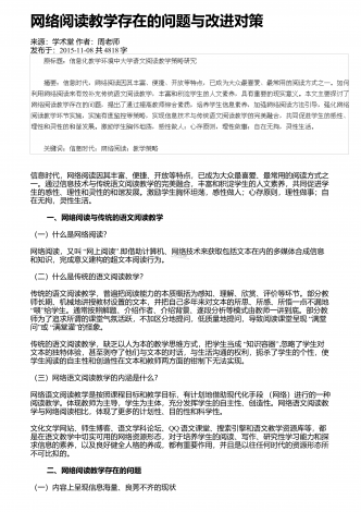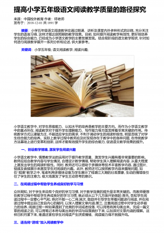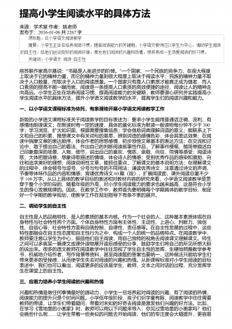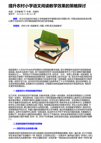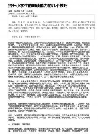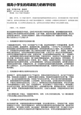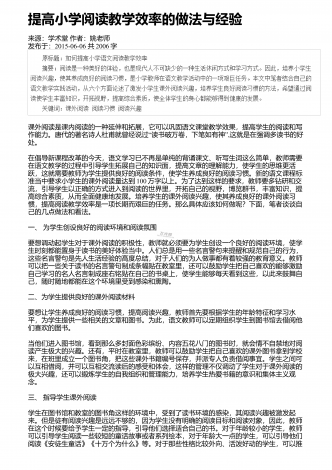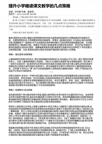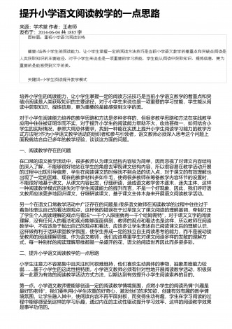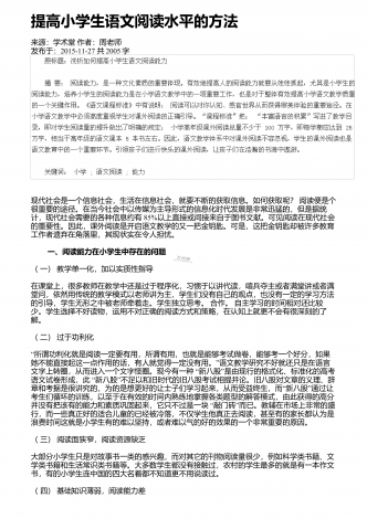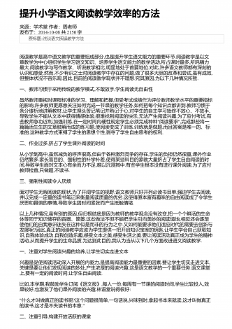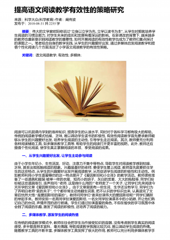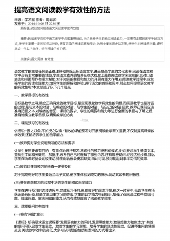 提高小学语文阅读教学中有效对话的策略探究来源:学周刊作者:胡晓玲发布于:2018-12-01共2477字 摘要:阅读教学是小学语文教学中的重要组成部分,随着新课改的不断深入,阅读教学也不再仅仅停留在阅读和理解层面,而是更加注重对话的有效性,阅读教学对话不仅有助于师生之间更好地交流和互动,也是追求课改价值和更新教学观念的重要表现,因此,教师应当遵循有效对话的阅读教学原则,才能提升学生的自主学习意识,释放个体生命感悟。本文中,笔者就阐述了小学语文阅读教学中有效对话的必要性,并分析了目前存在的主要问...