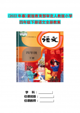 (2022年春)版教育部审定人教版小学四年级下册语文全册教案+数学教案汇编【Word版】