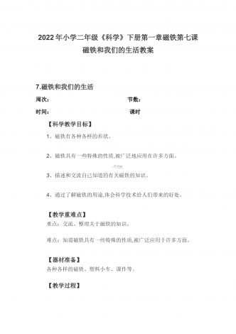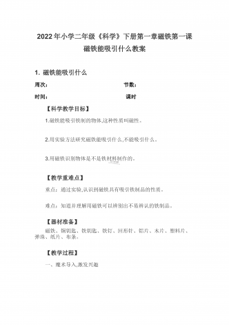 2022年小学二年级《科学》下册第一章磁铁第六课磁极间的相互作用教案